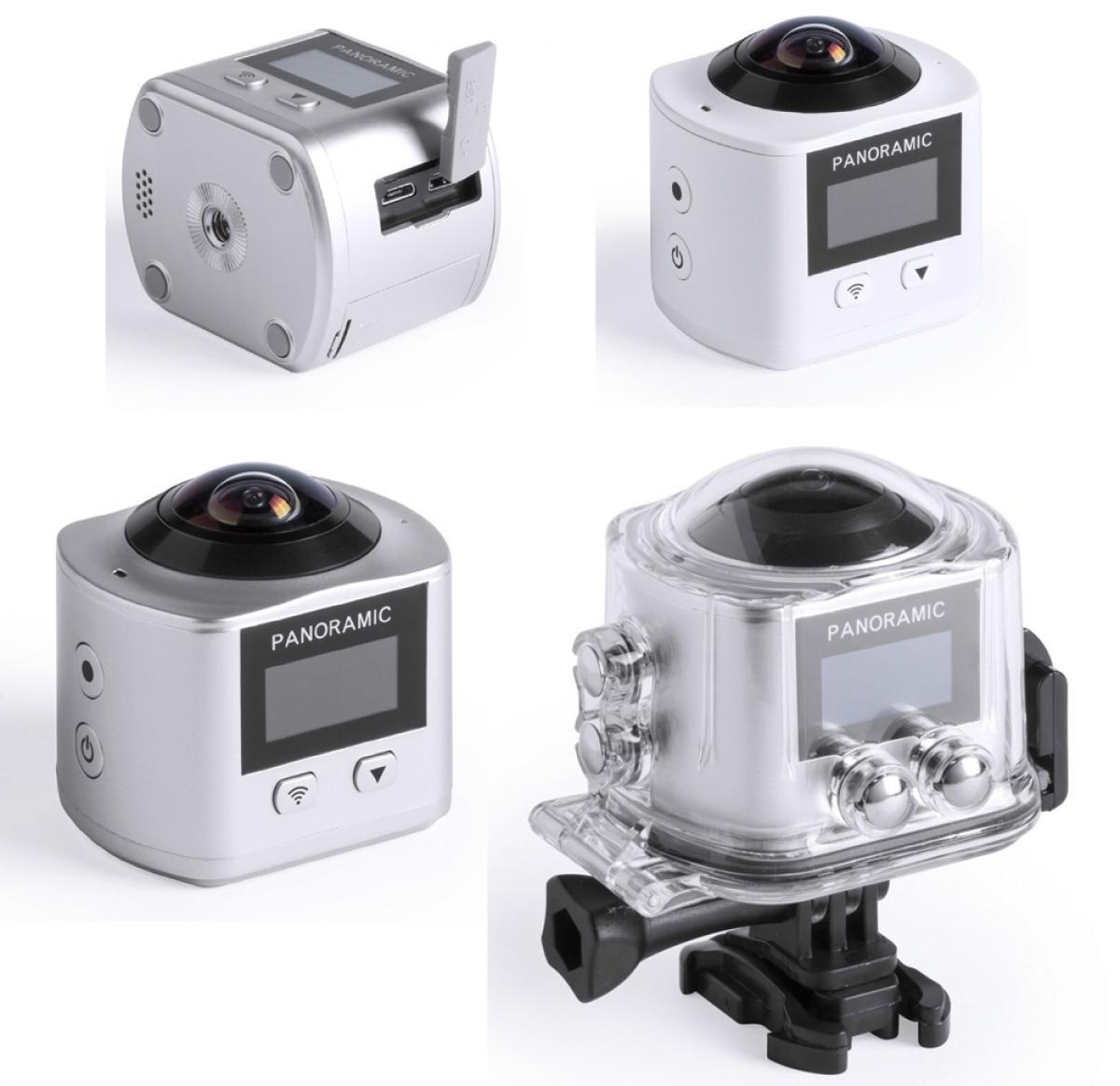 Panoramic waterproof action video camera with accessory pack. Featuring wi-fi support, micro SD slot and various photo effects including half/half, VR, inner rim, halfround, square, round, annular and 360°. Supplied with a USB charging cable and 11 piece accessory set.