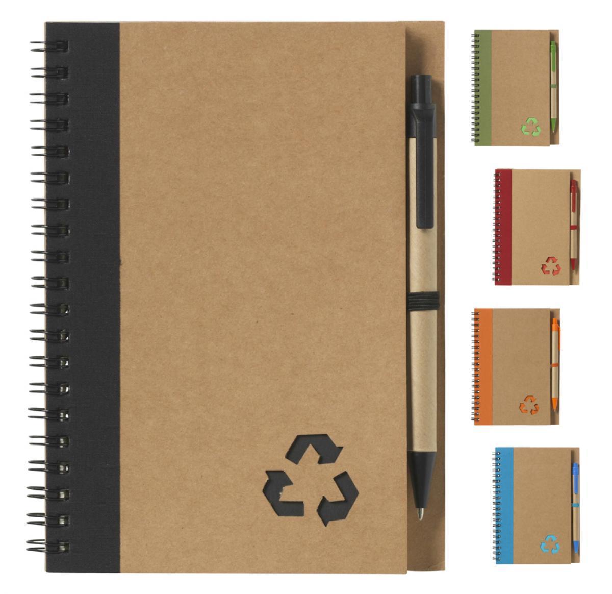 A5 Recycled Cardboard Spiral Notebook 70 Sheets Includes Pen