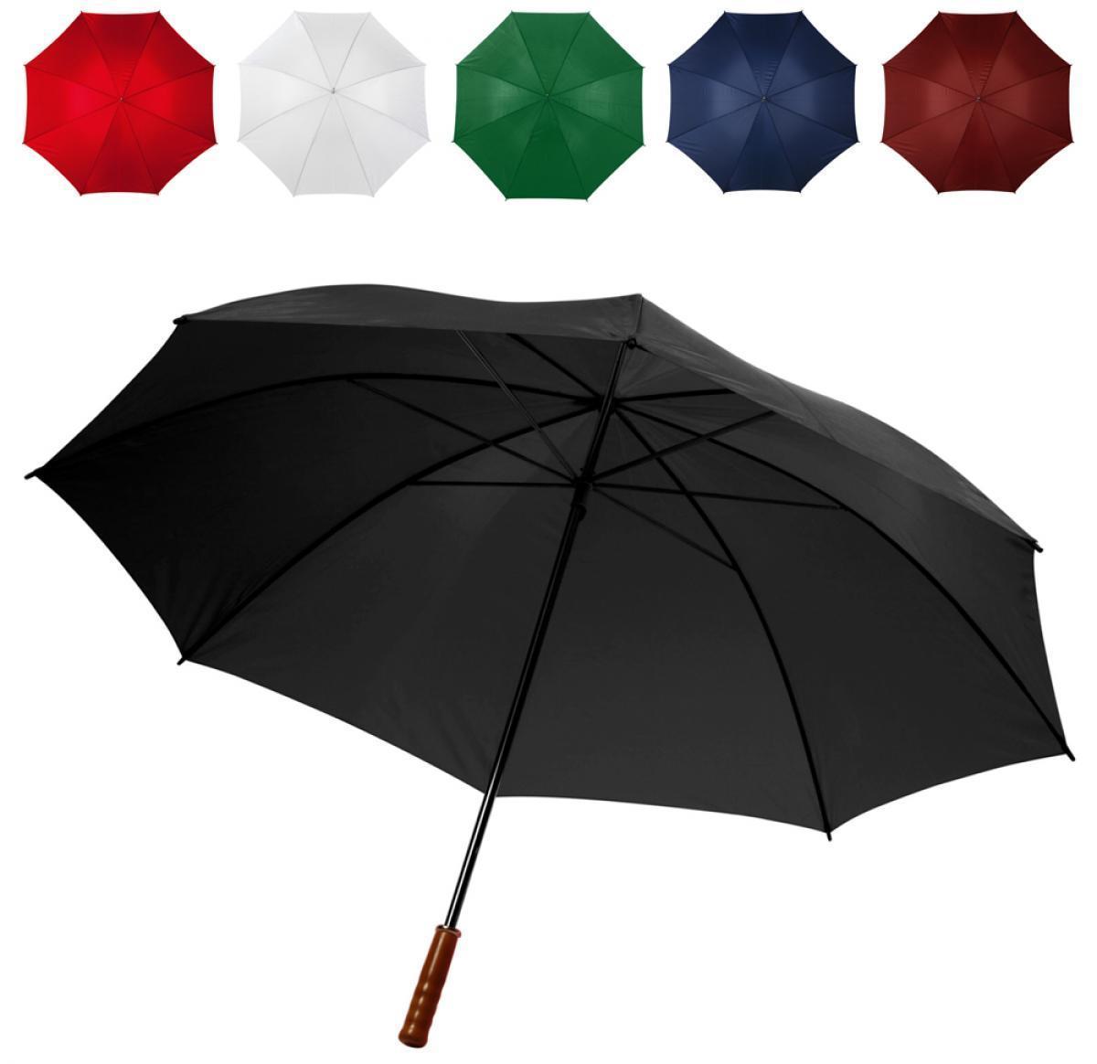 Manual golf umbrella polyester (190T) with a metal shaft, wooden handle and Velcro closing.