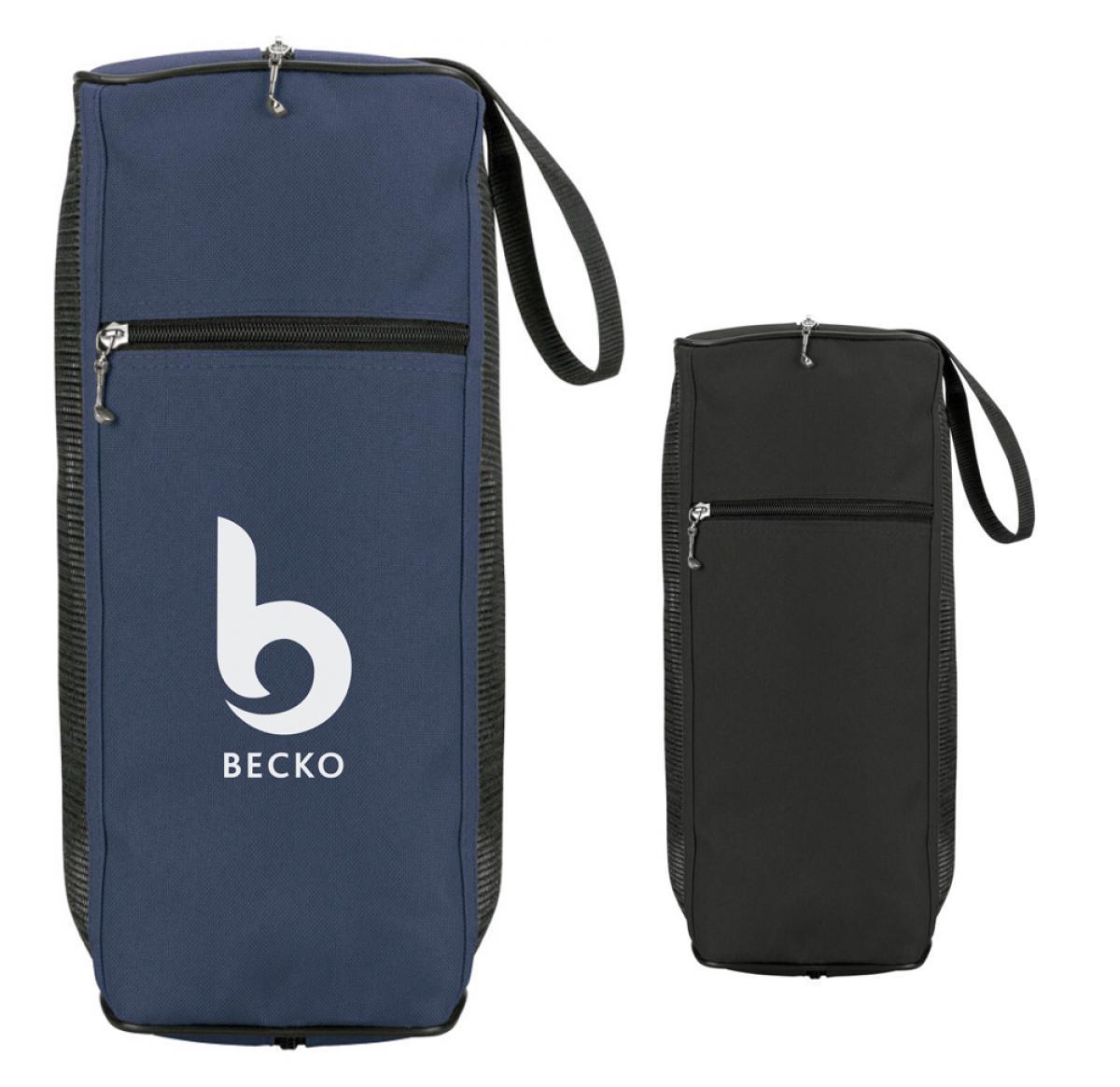 Zipped shoe bag with mesh sides for ventilation, handle and zipped front pocket. 600D Polyester