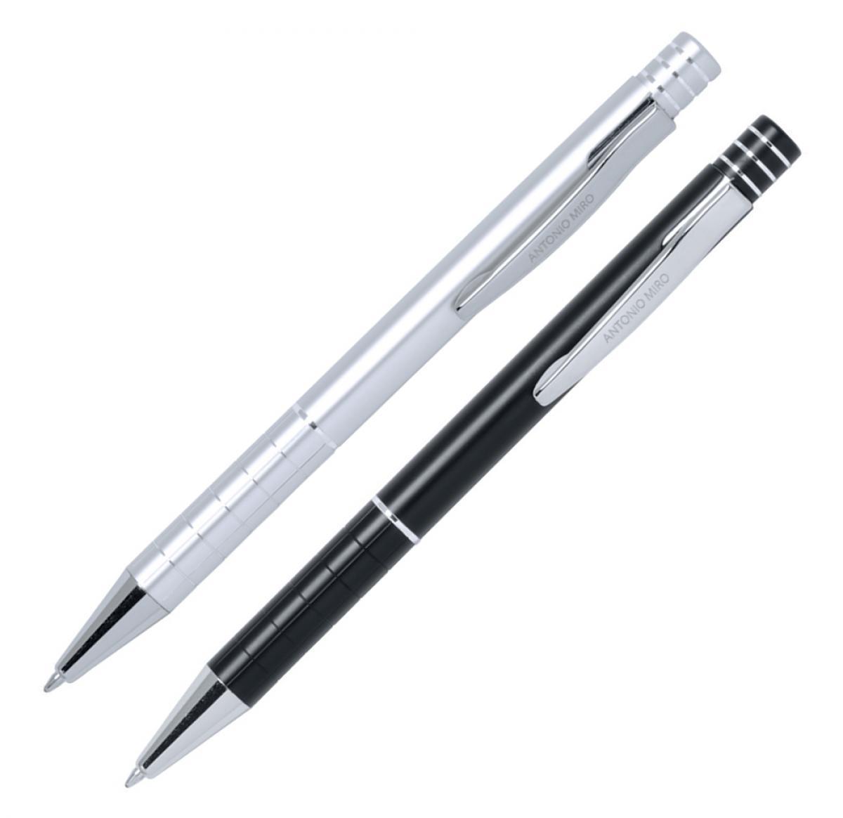 Retractable glossy pen made from aluminium with a built-in slider clip. Individually boxed.