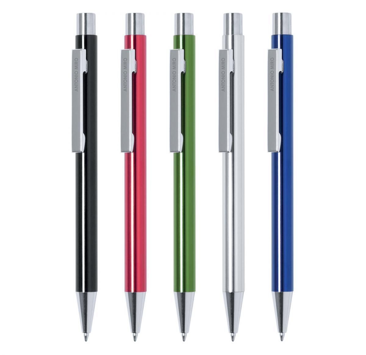 Retractable glossy pen made from aluminium. Built in slider clip.