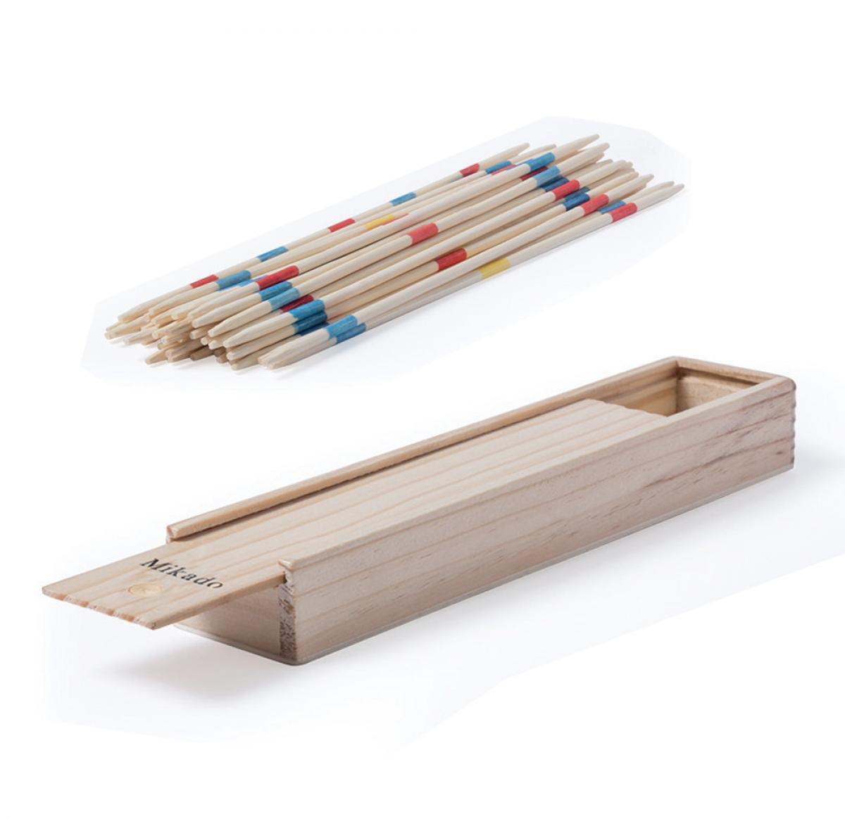 Wooden pick-up-sticks game. Comes with 41 pieces in total including a wooden box with sliding lid. This classic game of Mikado will entertain you for hours.
