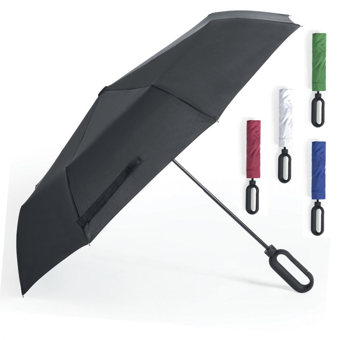 Windproof and retractable manual open umbrella made from pongee material. The handle has a carabineer clip built in so you can hang this on your bag. A must have for a rainy day.