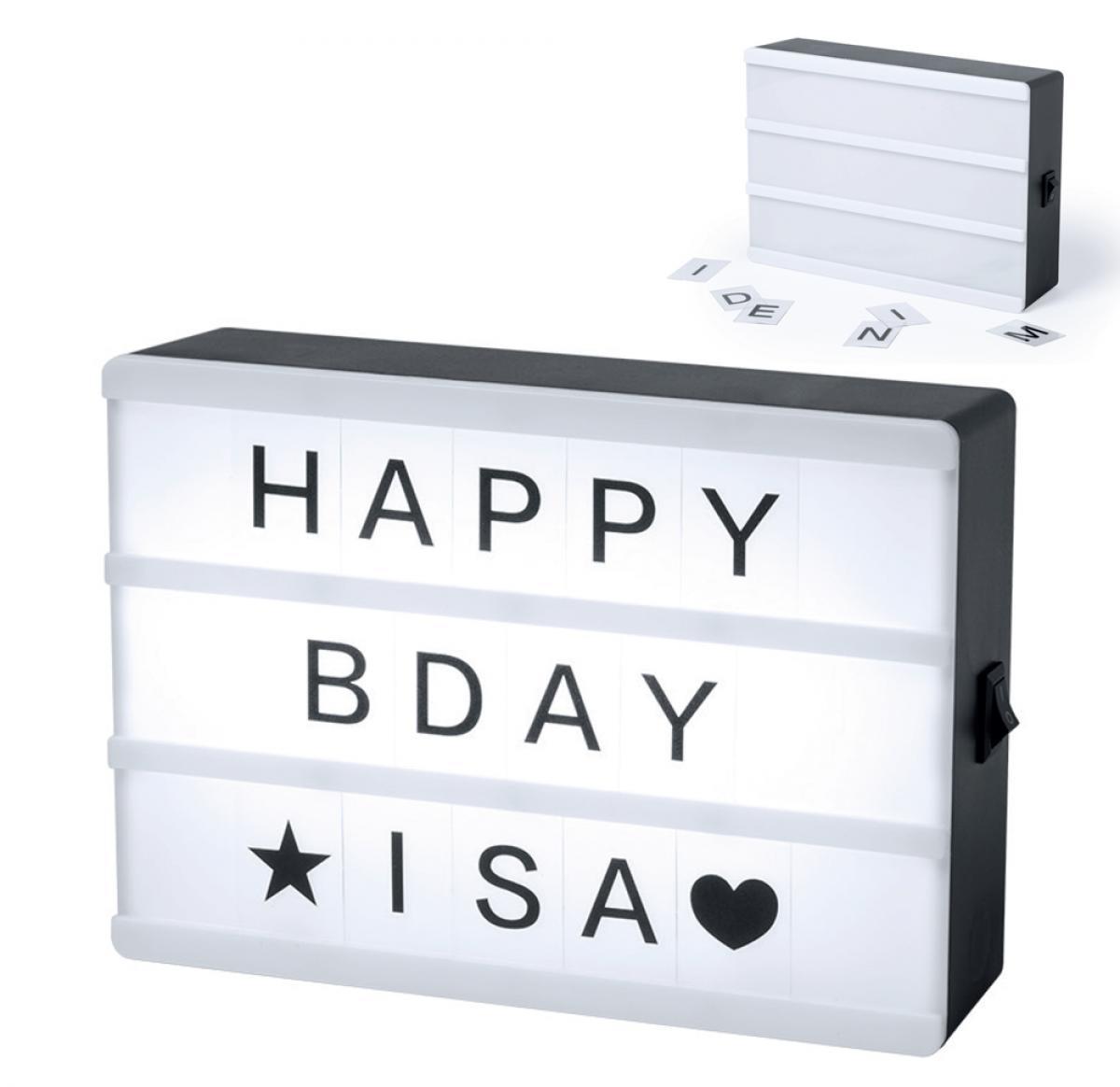 Desktop lightbox with four LED backlight illumination powered by four AAA batteries (not supplied). Supplied with 82 letters and numbers for complete personalisation and presented in an individual box.