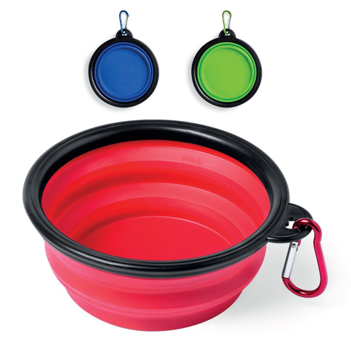Folding bowl for pets in resistant TPR material. Designed for solids and liquids, with 450ml capacity and matching colour metal carabiner. Available en a wide range of colours.
