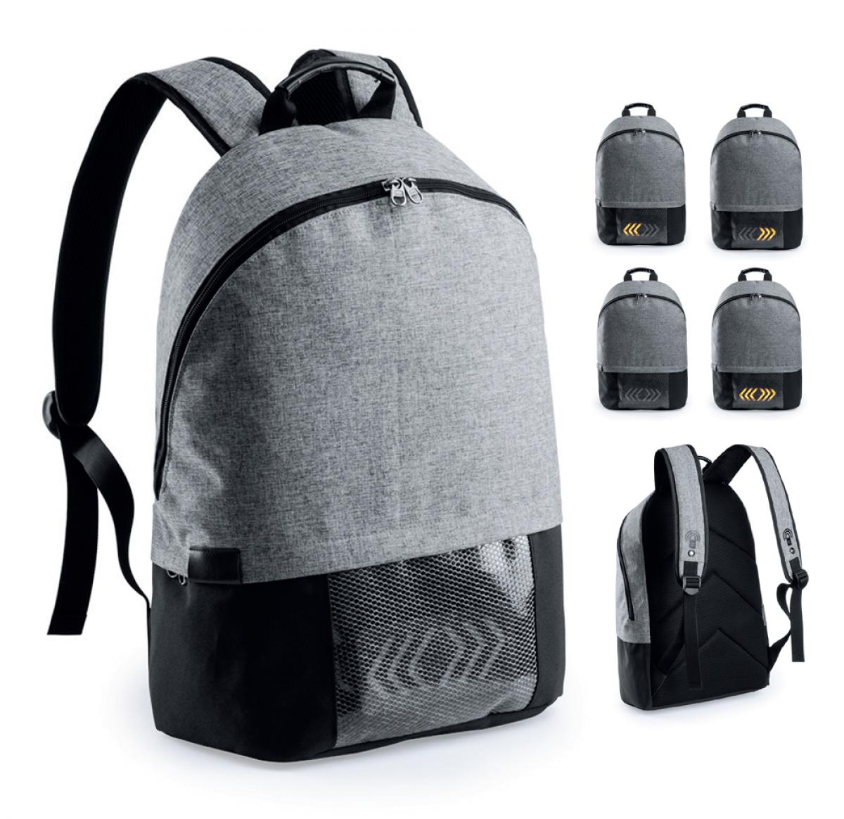 Backpack with led indicators, in resistant 600D polyester material. Led indicators at the base, controlled by 2 integrated buttons in the shoulder straps. Main compartment with double puller and inside padded pocket for laptops up to 15 inches. Padded backside and shoulder straps. With micro USB connection cable -not included-. Requires powerbank -not included- for LED light activation.