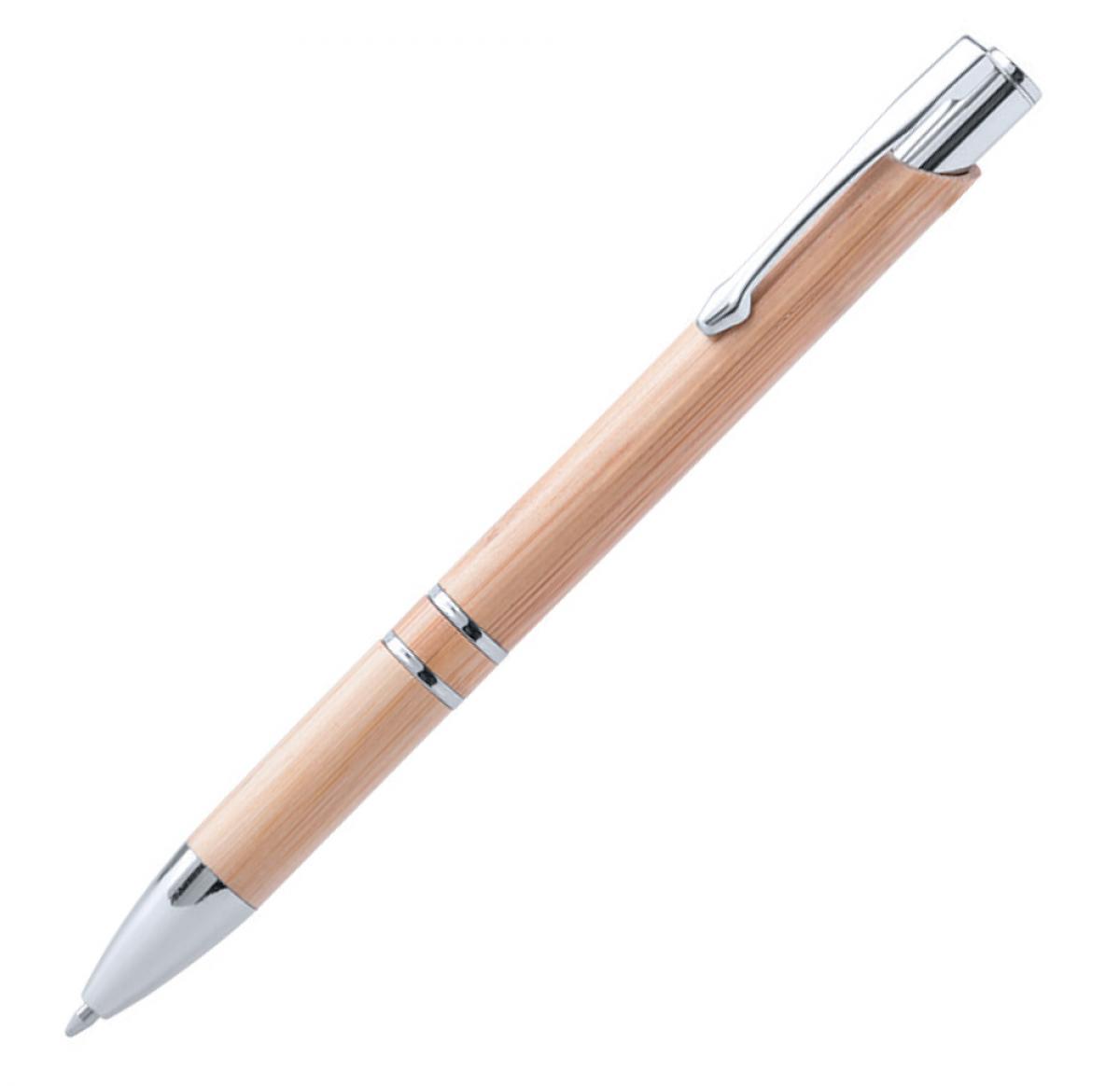 Nature line ball pen with body in bamboo wood. Push-up mechanism, with die-cut clip and details in chrome finishing. Jumbo cartridge and black ink refill.