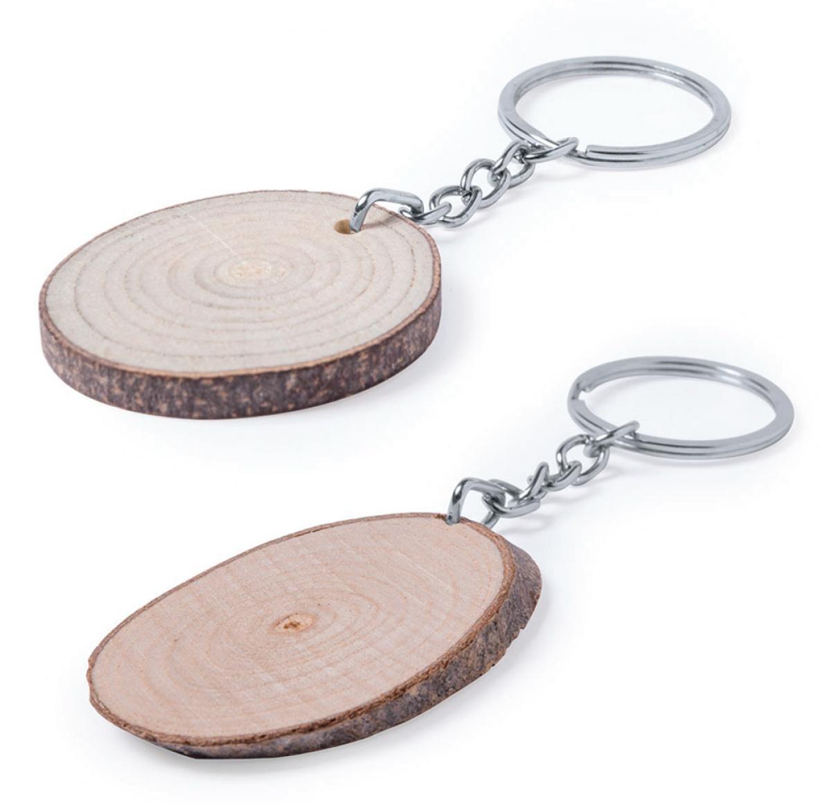 Smart nature line keychain. Obtained from cuts of beech wood, being all of them different and unique, each one with its own texture, thickness and colour. With a wide printing area and available in oval and rounded colours.