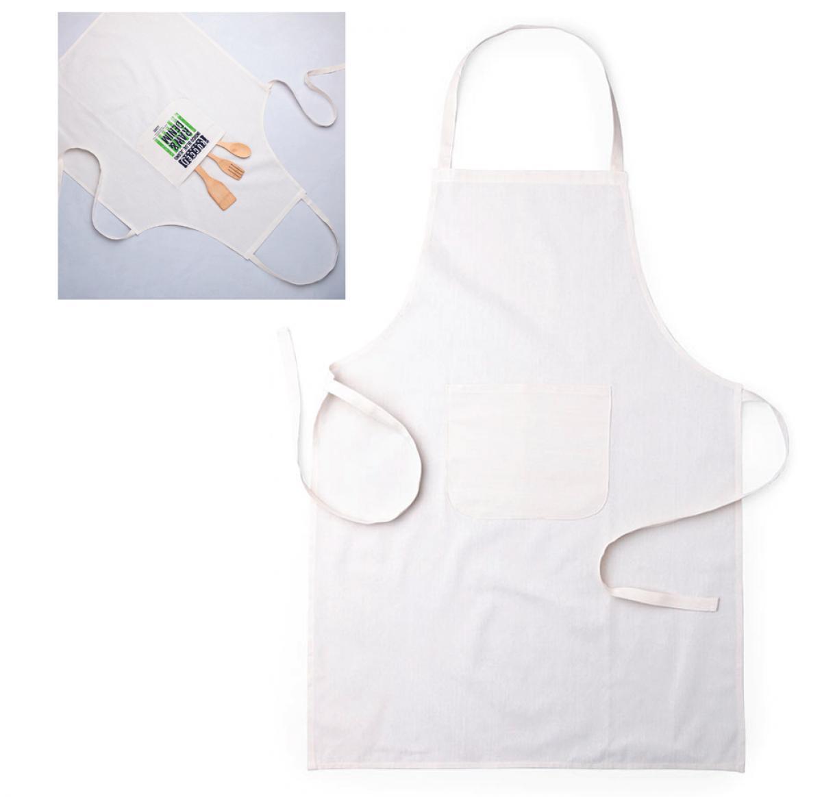 Apron in 100% cotton material -140g/m2-. In a white elegant colour, with big size front pocket and adjustment straps in matching colour. Fitting under the knee.