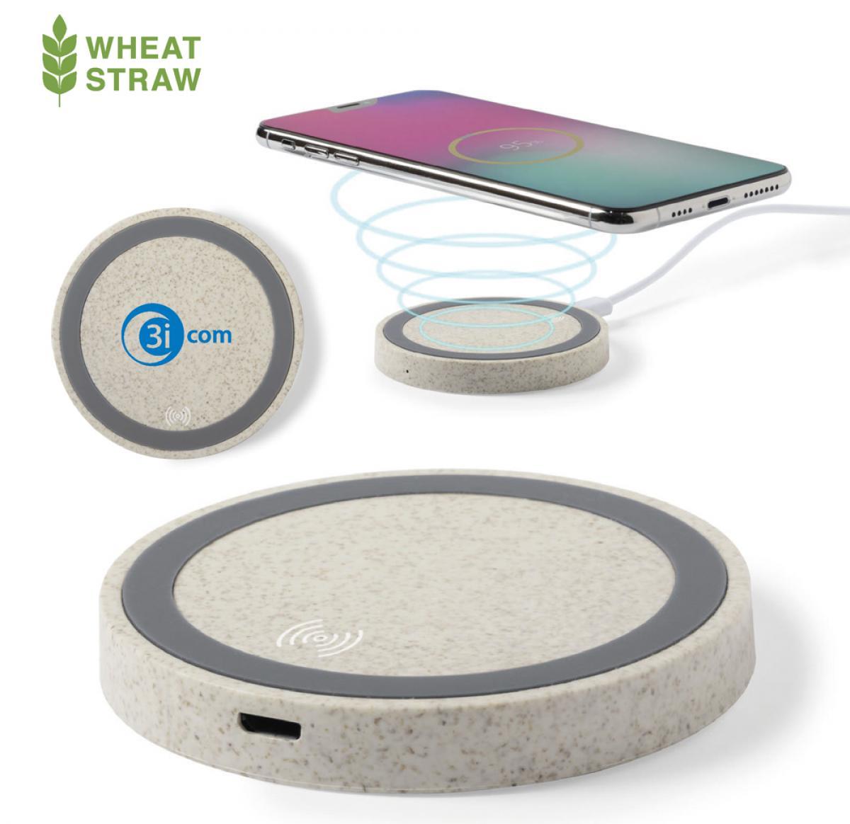A Wheat Straw/ABS/Bamboo eco-friendly wireless phone charger. This sleek, fast-charging mobile phone stand lets you re-charge your device quickly and is compatible with iPhones and Smartphones which are equipped with Qi technology. Compact and portable, this executive phone accessory is perfect for taking with you day to day and for use in the office, at University and at home. Made from sustainable materials and is a great alternative for the environmentally conscious user. Cable included.