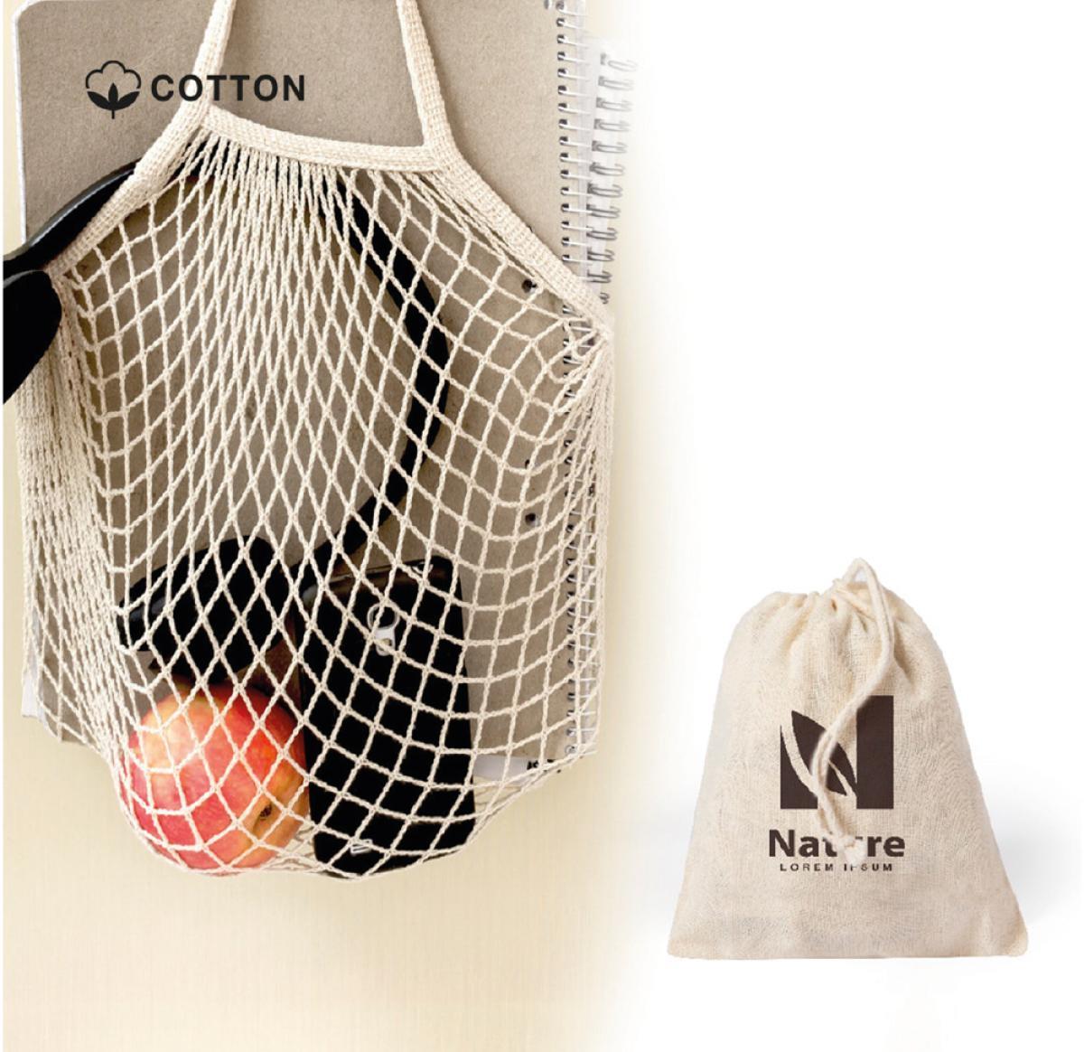 Big size, nature line mesh bag in raw colour cotton, with small folding bag for printing -string closure-. Long handles and small size folding for easy carrying.
