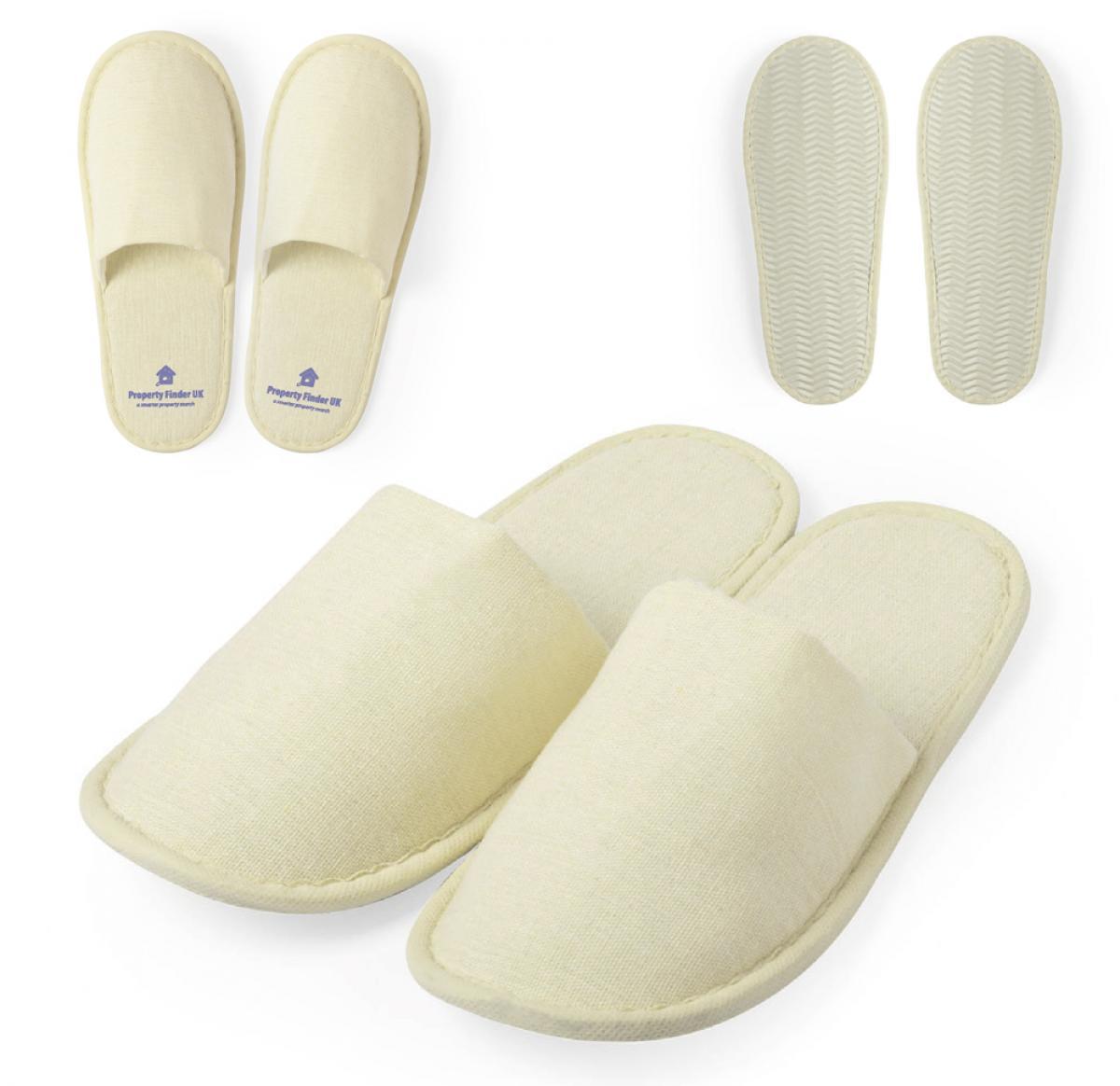 Unisex slippers in cotton/polyester. Comfy padded sole and reinforced stitching. One size fits all: 36-43 and available in natural colour.
