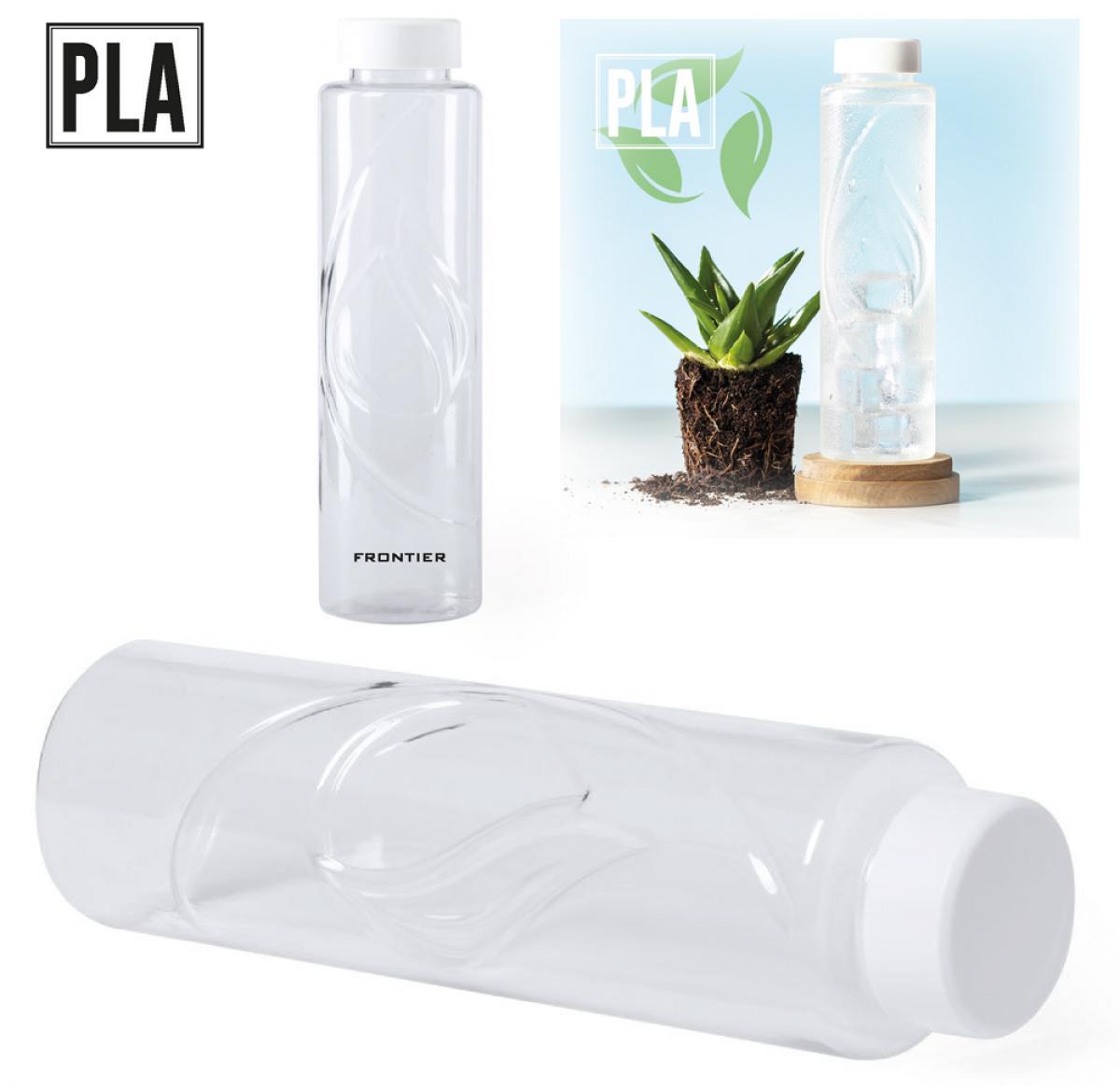Nature line bottle in 830 ml capacity. Manufactured in resistant PLA material -PolyLactic Acid-, obtained from 100% natural resources like corn starch, yucca or sugar cane, becoming 100% compostable at the end of its life span. With PLA distinctive and presented in an individual, eco design bag.