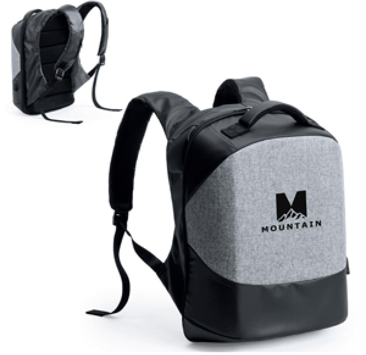 200D Polyester anti-theft multi-functional backpack. This modern backpack has a fully zipped closure, with multiple inner details including a padded laptop compartment for laptops up to 15" and a tablet holder up to 10" as well as a variety of smaller storage compartment. Designed for functionality with its waterproof layer and comfort with padded back and laptop straps, which both have a zipped hidden compartment perfect for cards and cash. The rucksack also has a built in USB connection for use with a power bank (not supplied). The bag also opens at an angle for easy access