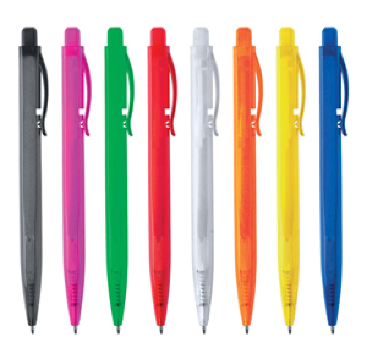 Stylish ball pen with quadrangular body in frosted finishing. Push-up mechanism, original clip and available in a wide range of vivid colours. Blue ink refill. Great stationery giveaway for schools, offices and universities