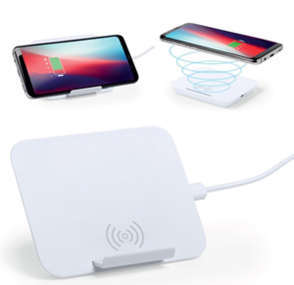 Wireless charging pad with built in smartphone holder. This desktop phone charger is perfect for home and office with a minimalistic design, compatible with smartphones with built in QI technology. Cable included.