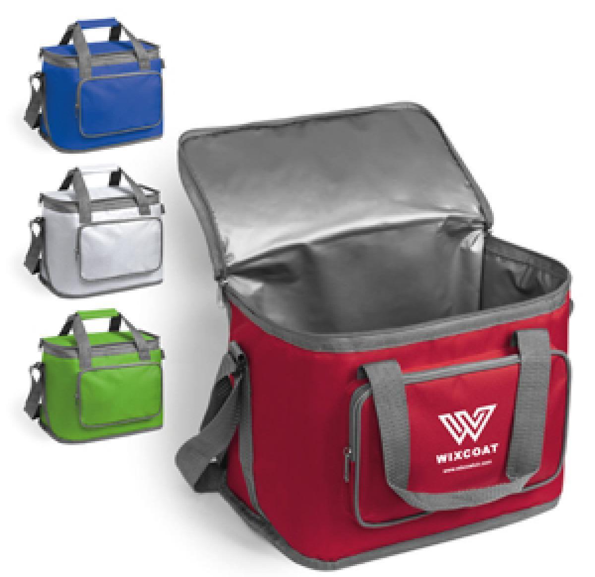 Cooler bag in durable 600D polyester with inside in PEVA, BPA free. Zipper closure, with big size front pocket, nylon reinforced handles and adjustable shoulder strap. Available in a wide range of colours, with details and accessories in grey colour.