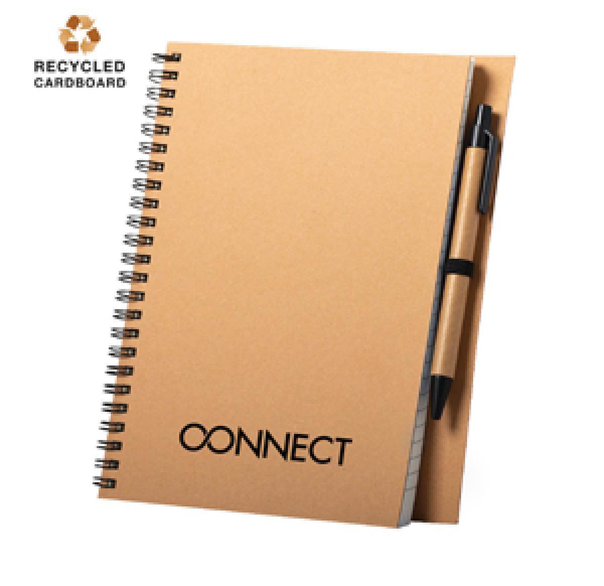 Branded Recycled Students A5 Wiro Bound Cardboard Notebooks & Pen Set
