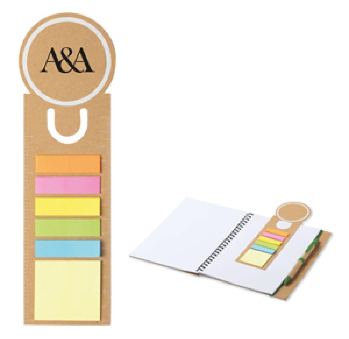 Bookmark ruler in nature line. Made of recycled cardboard, with a wide printing area. Including 15 adhesive notes medium size and 75 mini adhesive notes