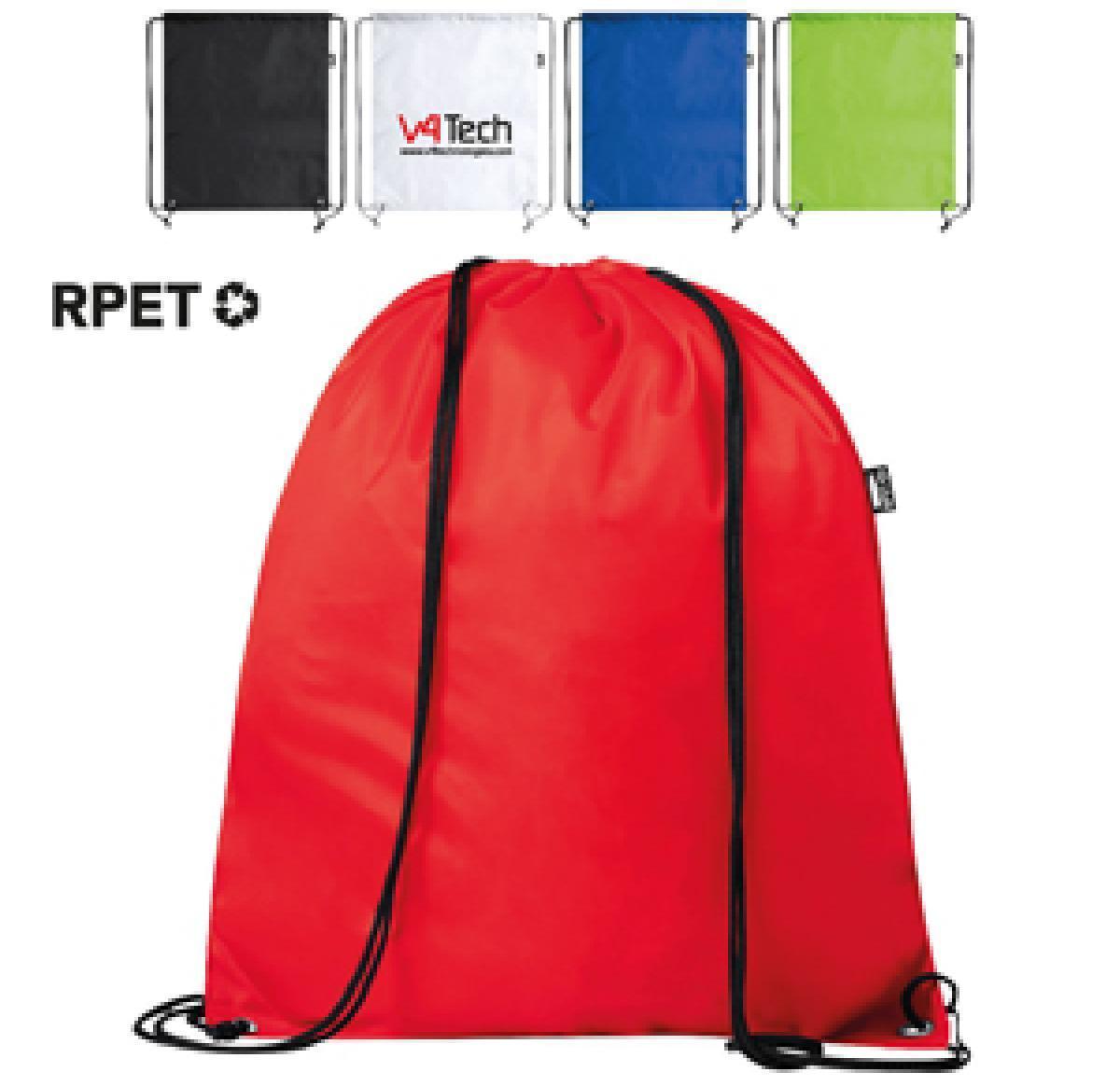 Drawstring backpack in soft polyester RPET, obtained from recycled plastic materials, to encourage the reusing of plastic residues and contribute to the Earth’s sustainability. Self-adjusting strings, reinforced corners and resistant metal eyelets. RPET distinctive side label and available in a wide range of colours (white colour especially manufactured for sublimation printing).