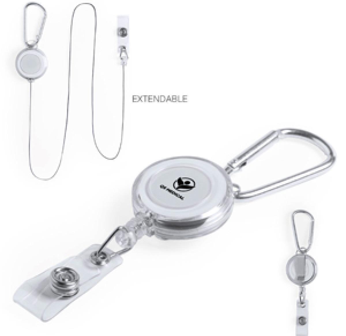 Extendable ID holder in a sober design, with hook accessory for ID and an extendable mechanism of up to 65 cm length. With metal carabiner and a wide printing area.