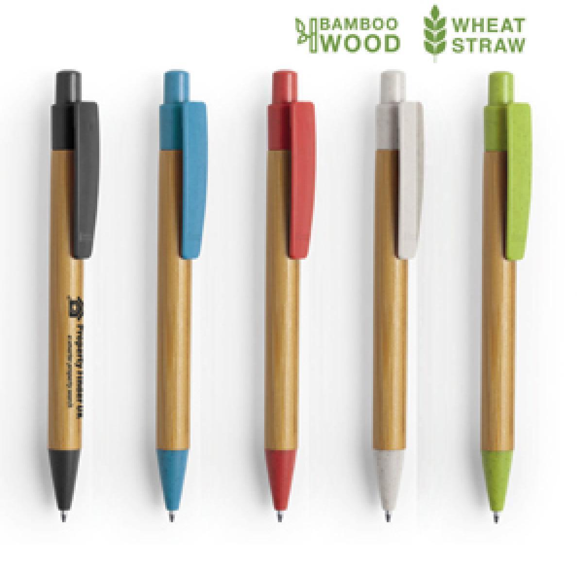 Nature line, push-up mechanism ball pen. Body in bamboo, with accessories in wheat straw, to encourage the use of natural raw materials and reducing contaminant emissions. XL size clip, available in a wide range of colours and in blue ink.