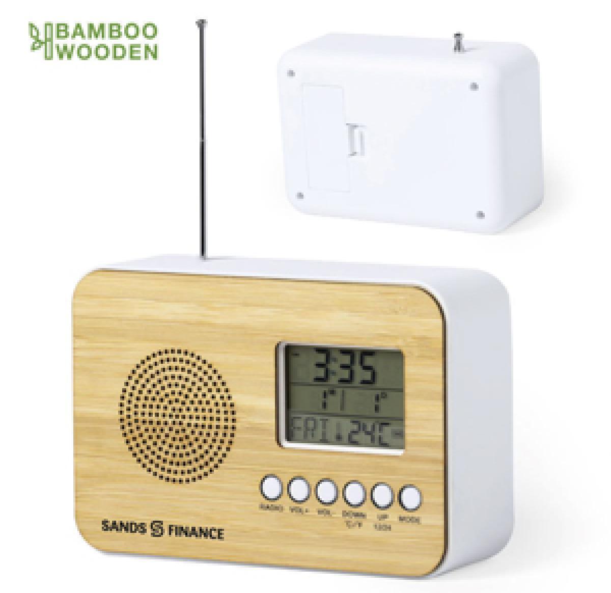Branded Bamboo Radio Alarm Clock Battery Powered