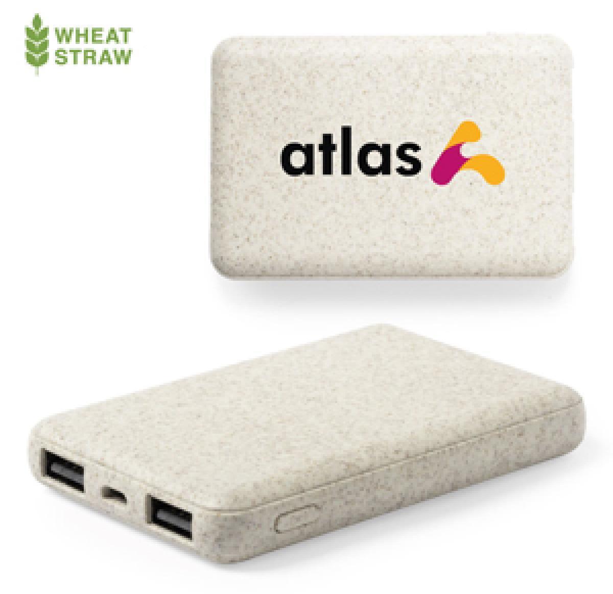 This wheat straw/ABS 5000mAh eco-friendly power bank is made from sustainable materials and lets you re-charge your device quickly when on the go without the need for a power socket. Compact and portable with 2 dual USB outputs, this executive phone accessory is perfect for taking with you day to day and for use in the office, at University and at home. A great alternative for the environmentally conscious user. Cable included.