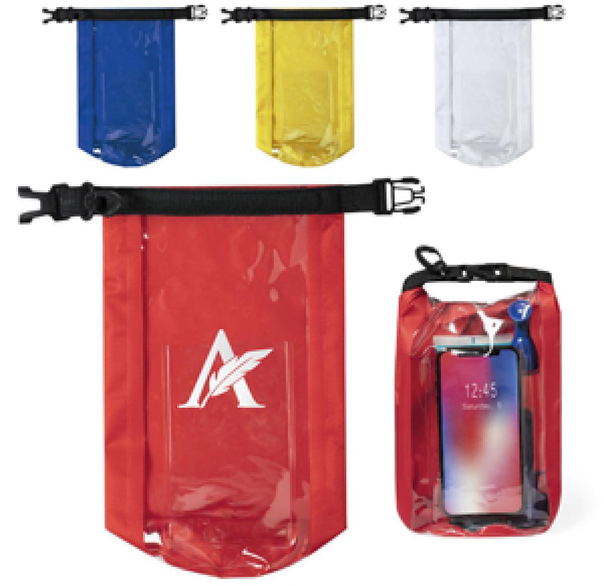 Waterproof bag in soft and resistant ripstop with watertight security closure, 2l capacity. Transparent, touch sensitive window in one side for smartphone, handle with buckle closure and carrying accessory with carabiner. Available in a wide range of colours, with details and accessories in black.