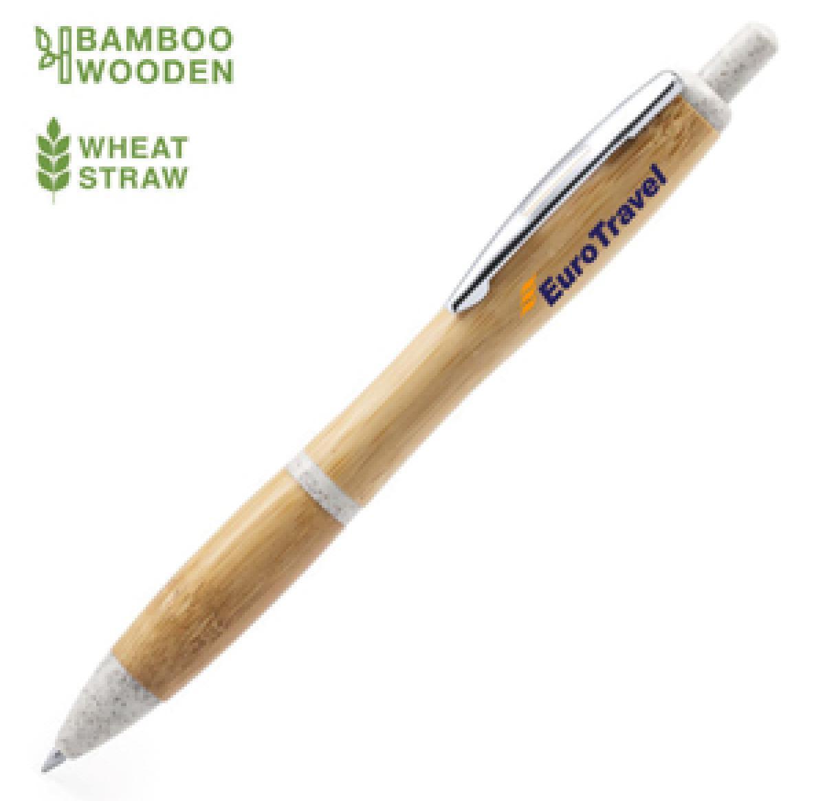 Sustainable Bamboo Pen Tip And Click Top In Wheat Straw