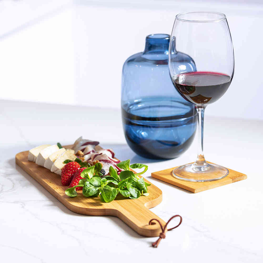 Board made of bamboo, with smooth and resistant polished finish. Ideal for cutting and presentation. With a handle for easy use and a hanging cord in PU leather.