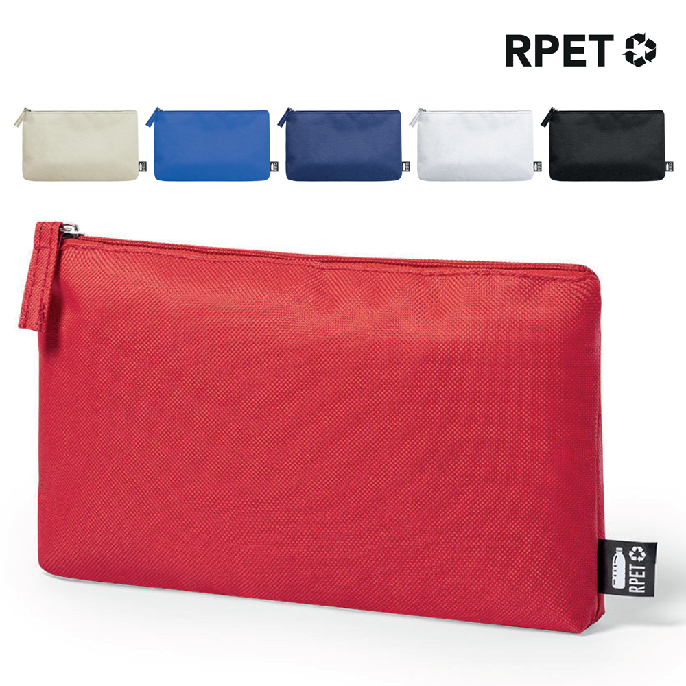 Nature line beauty bag in resistant 600D RPET, made from recycled plastic to encourage the reuse of plastic waste and contribute to the sustainability of the planet. With zipper and matching color puller. Available in a wide range of colours, with RPET distinctive on the outside label.