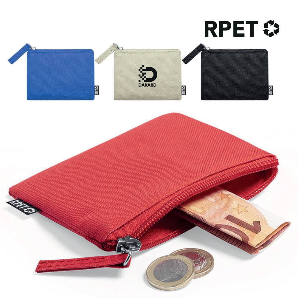 Nature line coin purse in resistant 600D RPET, made from recycled plastic to encourage the reuse of plastic waste and contribute to the sustainability of the planet. With zipper closure and matching color puller. Available in a wide range of colours, with RPET distinctive on the outside label.