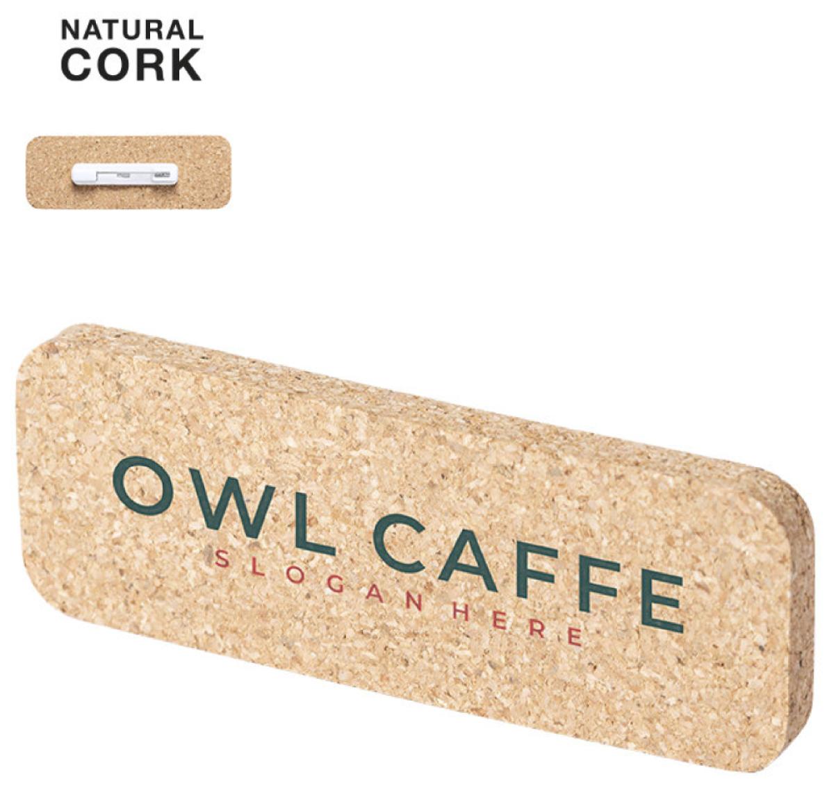 Nature line identifier made of natural cork, promoting the use of natural raw materials and reducing pollutant emissions. Security fastening, with safety pin at the back side.