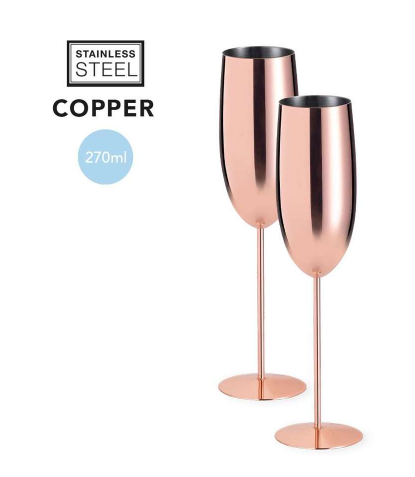 Rose Gold Plated Stainless Steel Champagne Flutes 270ml 2 Piece Set