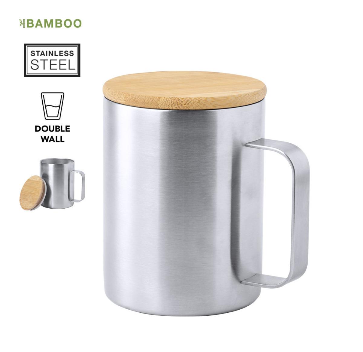 Stainless steel thermal mug with a capacity of 350ml. Lid made in bamboo and presented in an attractive, eco-design box.
