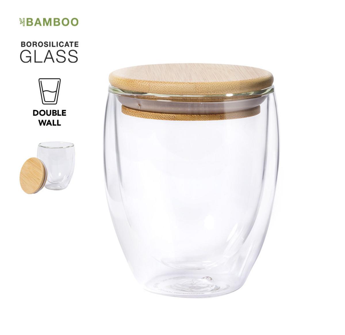Promotional Glass Tea/Coffee Cups 250ml Insulated Borosilicate Bamboo Lid Nystre