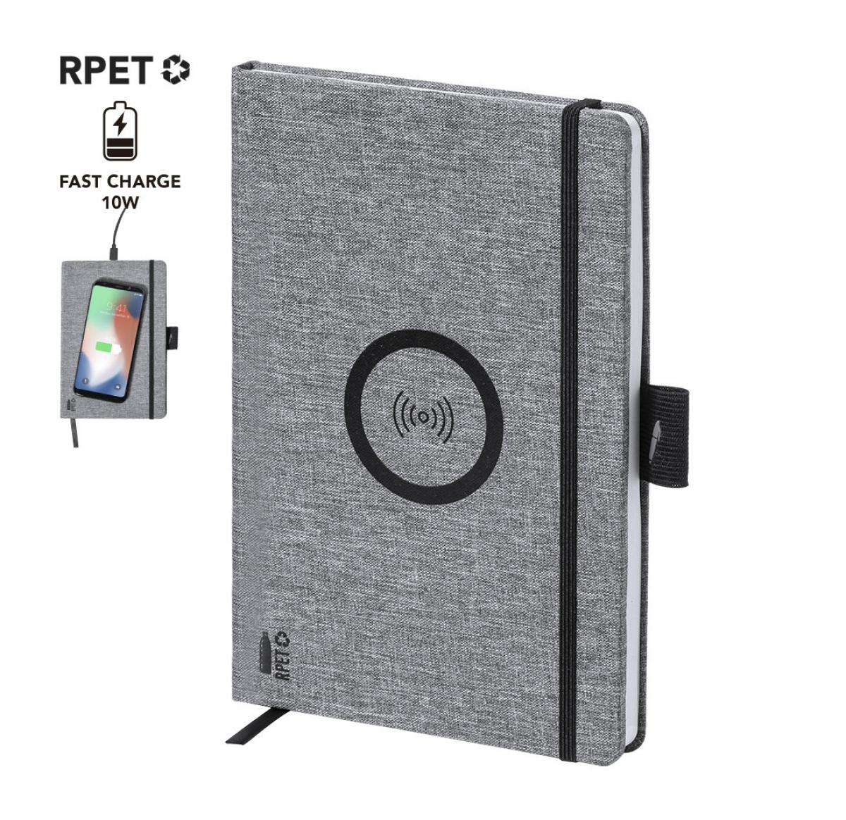 Recycled RPET A5 Notebook & Wireless Charger Notepad Bein