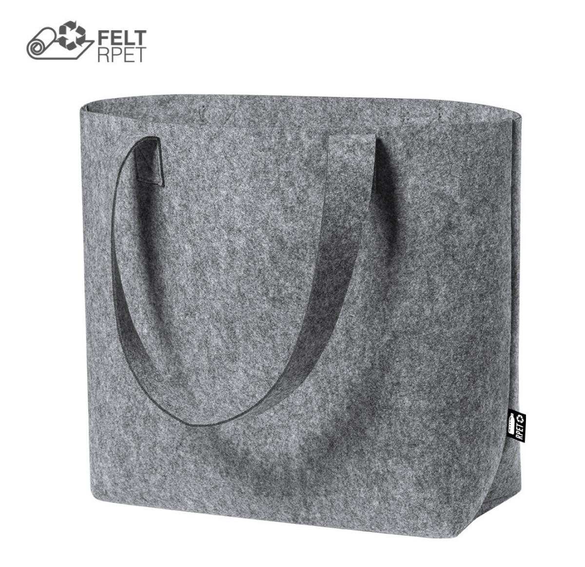 Nature line bag in resistant, recycled RPET felt. The result of the combination of the recycling processes of plastic materials along with the millenary technique of felt manufacturing, resulting in an eco-trend material that, in addition to being of recycled origin, also becomes recyclable. Gusset at the base, with long and extra wide reinforced handles (62 x 3.5 cm). Resistance up to 6kg, with RPET emblem on outside label.
