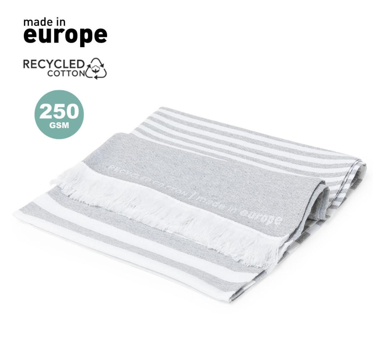 Nature line pareo towel 2 in 1. Made in Europe, using a combination of recycled cotton and polyester of 250g/m2. With GRS certification (Global Recycled Standard) confirming the recycled origin of the material used in the manufacture of the product. Size 150 x 80 cm.