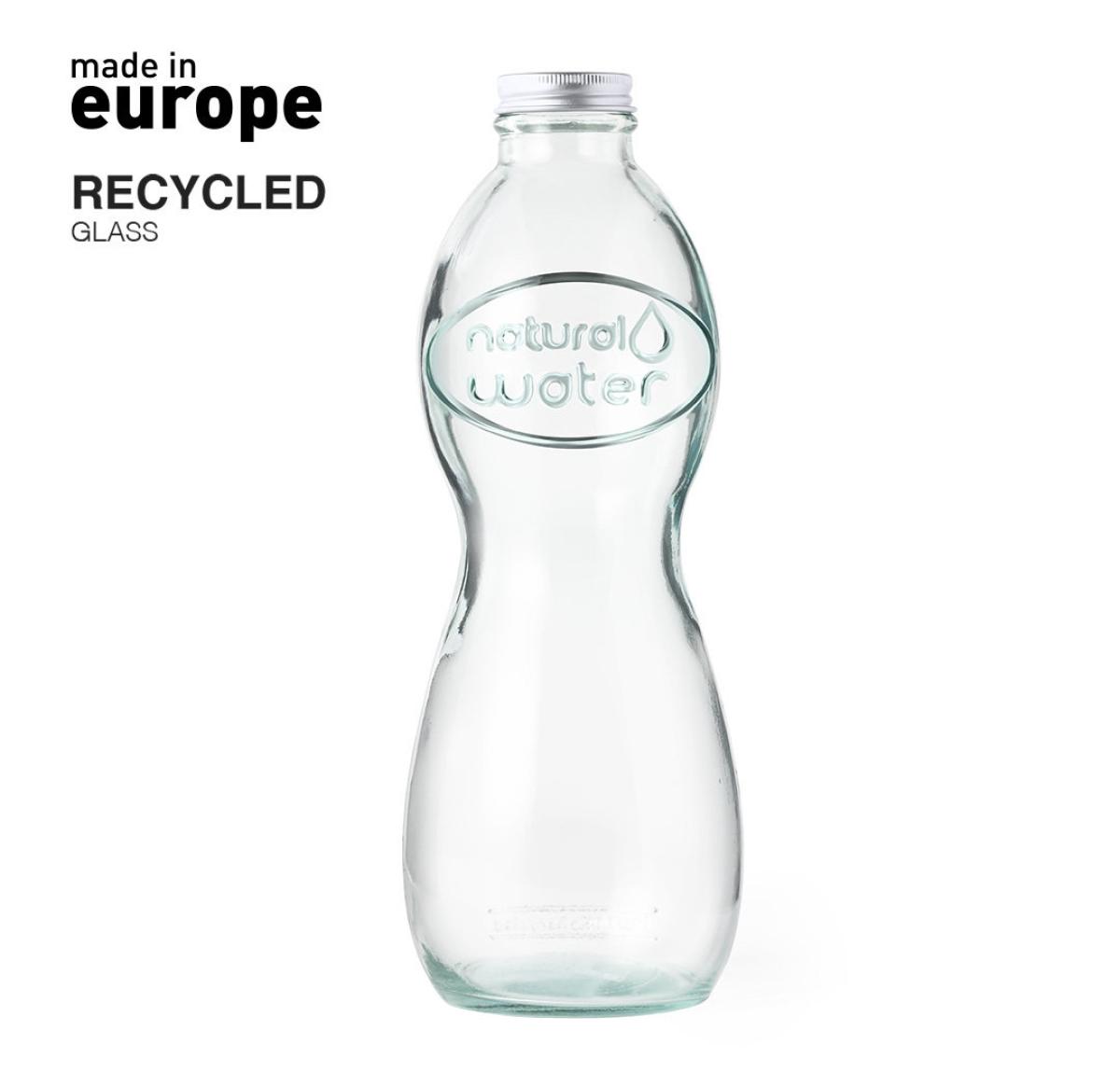 Nature line bottle with 1l capacity and metal screw-on lid. Made in Europe from recycled glass with GRS certification (Global Recycled Standard) confirming the recycled origin of the material used in the manufacture of the product. Presented in a recycled cardboard box with window.