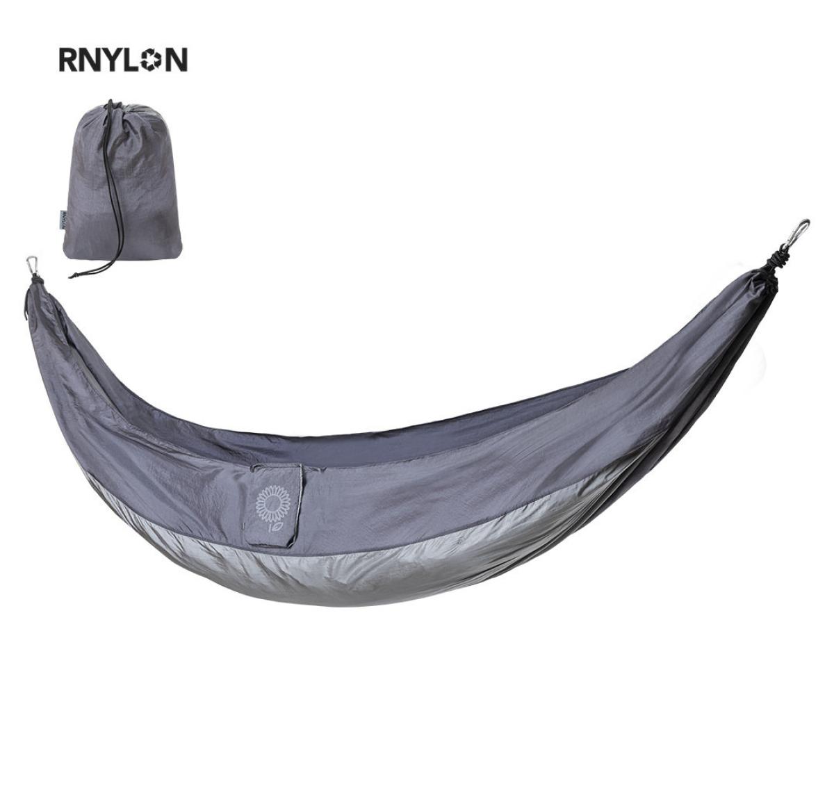 Hammock in size 270x140cm, made of resistant, recycled nylon. The result of using pre- and post-consumer nylon waste, which is reused to obtain this new material, not altering its properties and complying with the principles of the 3Rs (Reduce, Reuse, Recycle). With durable lashing straps and metal carabiners. Resistant up to 200kg. Presentation folded, with adjustable strap. Assembly manual included.