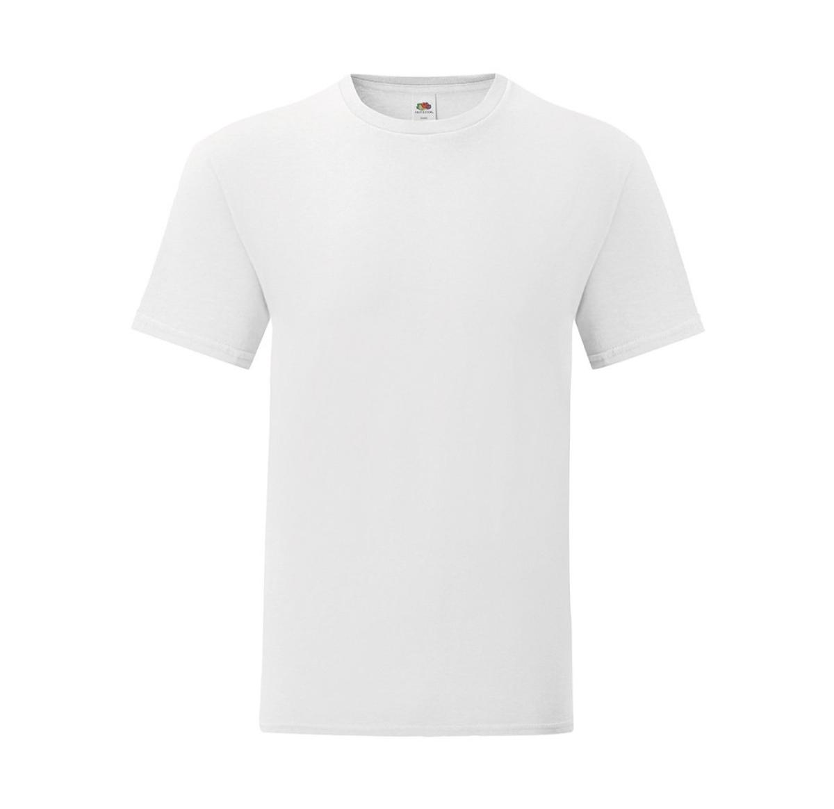 Adult white T-shirt Iconic by Fruit Of The Loom. Made in 100% brushed cotton Ring Spun 140g/m2. Soft touch and modern cut, with narrow 1x1 ribbed crew neck and matching placket. Easily removable label and available in sizes S, M, L, XL, XXL.