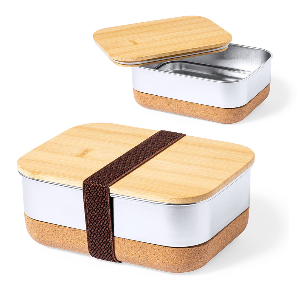 Lunchbox Limited Edition. A fascinating design that combines design, functionality and sustainability. Composed of a main compartment in stainless steel of 1 litre capacity, hermetic lid in bamboo and base in natural cork. Includes safety strap. From the perfect combination of exclusivity and design, come Limited Edition, a special collection of limited edition promotional ideas. A new concept, inspired by the fusion of premium products with the latest and most innovative trends and with a limited selection available, turn a gift into a unique and unforgettable experience. Exclusive Limited Edition presentation case, with a design protected by industrial property rights. Including card with description of Limited Edition in recycled cardboard.
