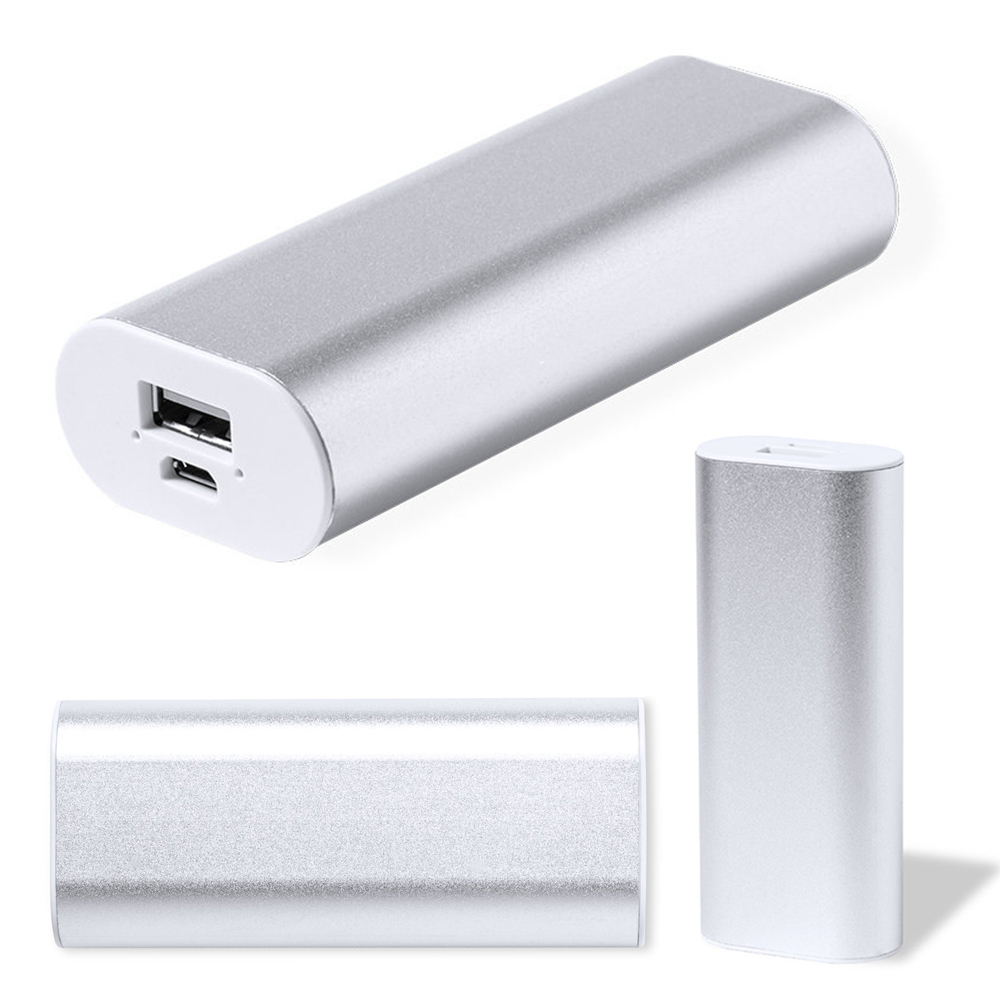 External auxiliary battery of 2,200 mAh, with curved design and manufactured in aluminium. With USB output and Micro USB input. LED charging status indicators and Micro USB charging cable included. Presented in an individual kraft design box, with instruction manual in English and Spanish.