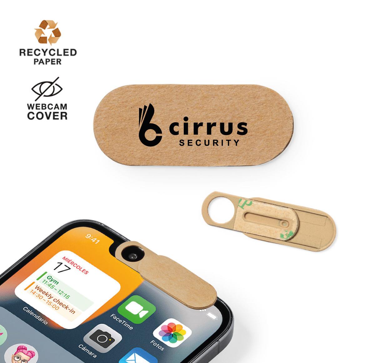 Sliding cover in nature line made of recycled paper. Designed to cover the camera of electronic devices and ensure privacy protection. With 3M adhesive, of extra strong fixation and residue-free when removed from the device.