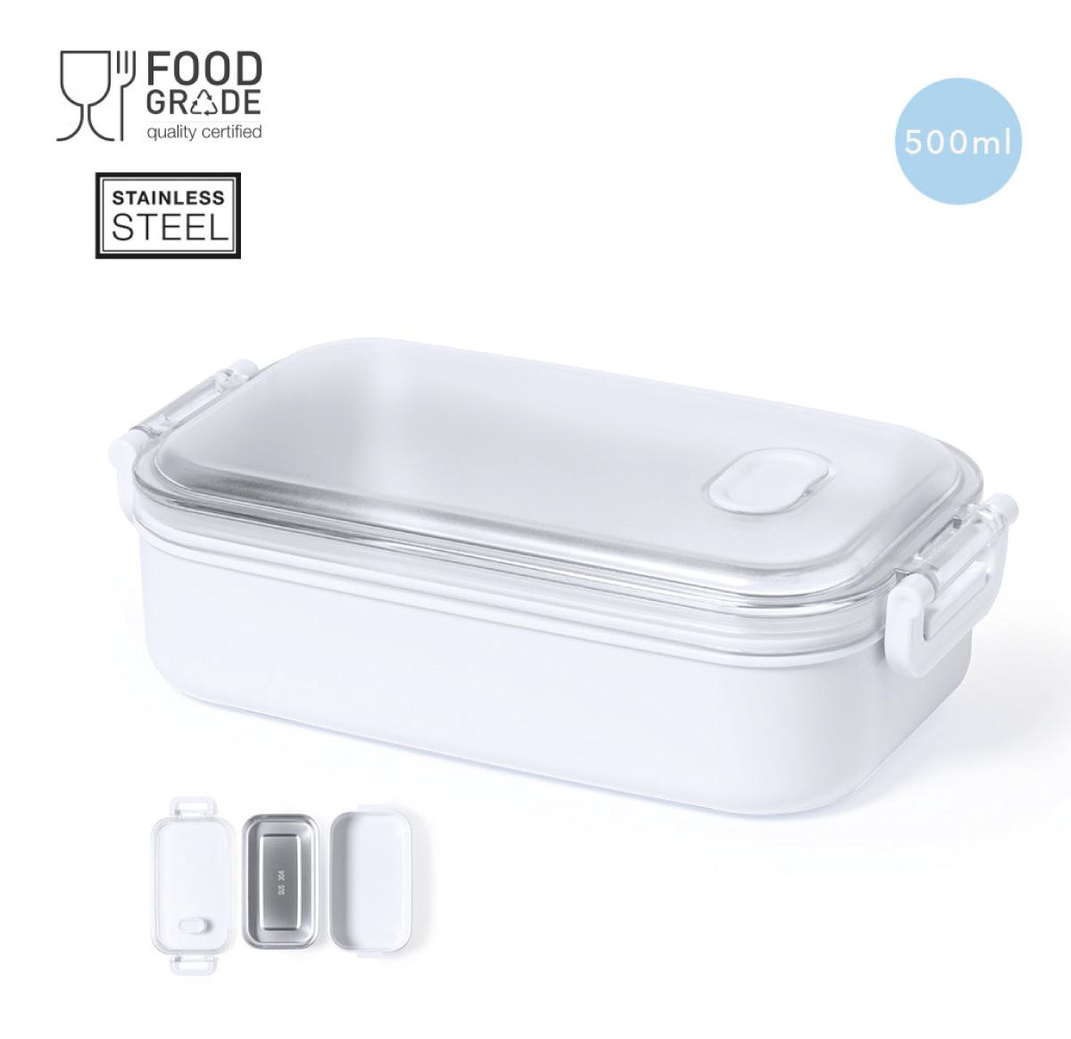 Thermal lunch box with a capacity of 500 ml, designed to keep the temperature for long periods of time. Body in resistant PP, with stainless steel inner tray and hermetic safety seal. IIdeal for keeping the heat in, with the option of adding hot water to prolong it.