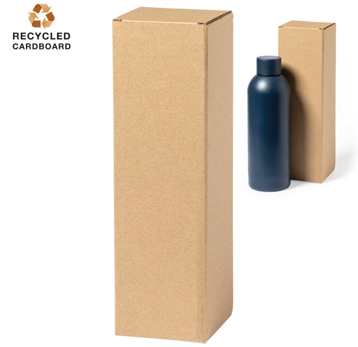 Presentation box specially designed for bottles. Size 8x26,7x8 cm, made of recycled, corrugated cardboard with a kraft finish. In line with the market trend towards integral gift sustainability, offering solutions of recycled origin, aimed at supporting the improvement and conservation of our planet.