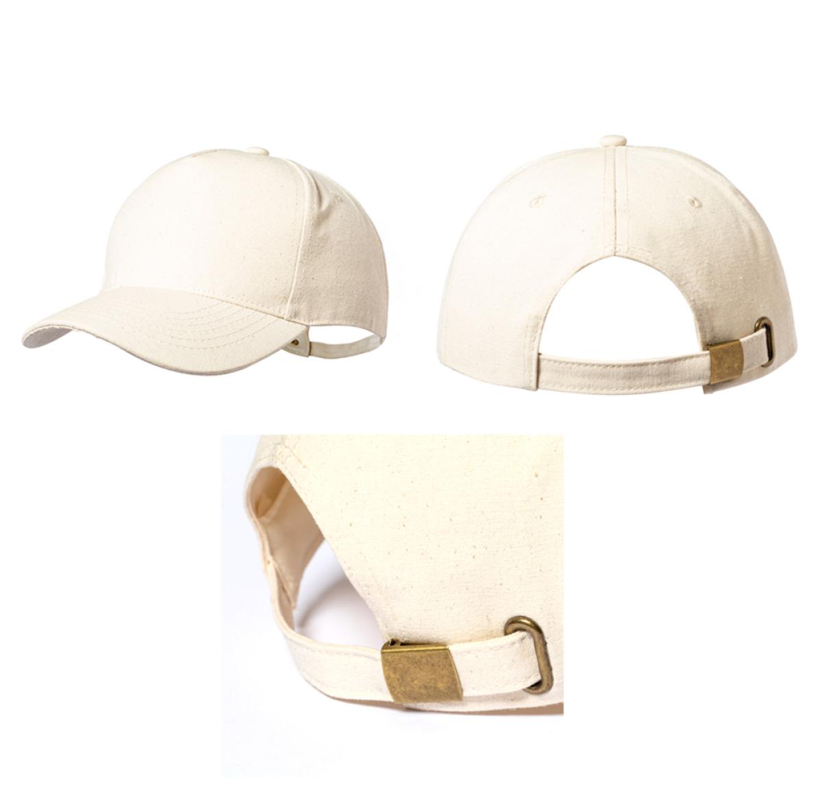 High quality cap made of durable 100% canvas. With 5 panels, embroidered ventilation holes and metal buckle closure.